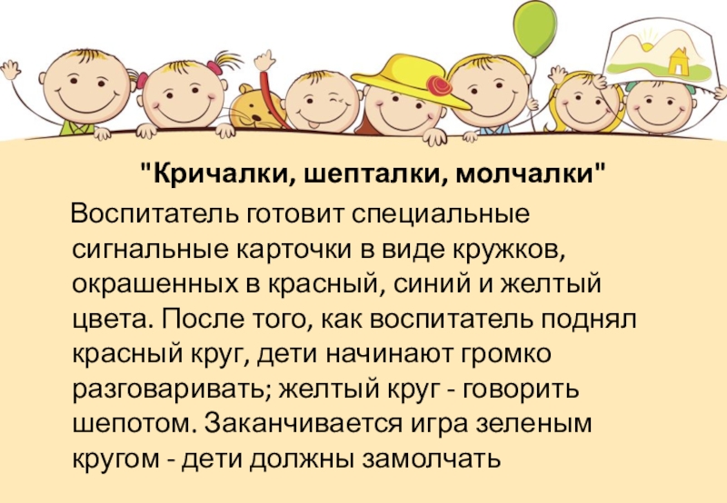 Слайд 6 "Кричалки, шепталки, молчалки"