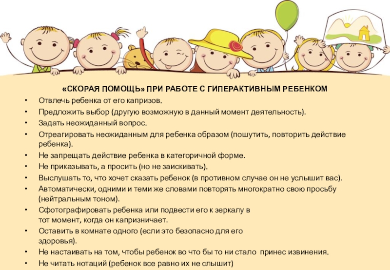 Слайд 26«СКОРАЯ ПОМОЩЬ» ПРИ РАБОТЕ С ГИПЕРАКТИВНЫМ РЕБЕНКОМ