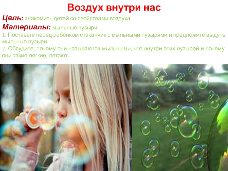 2. Обсудите, почему они называются мыльными, что внутри этих пузырей и почему они такие легкие, летают.