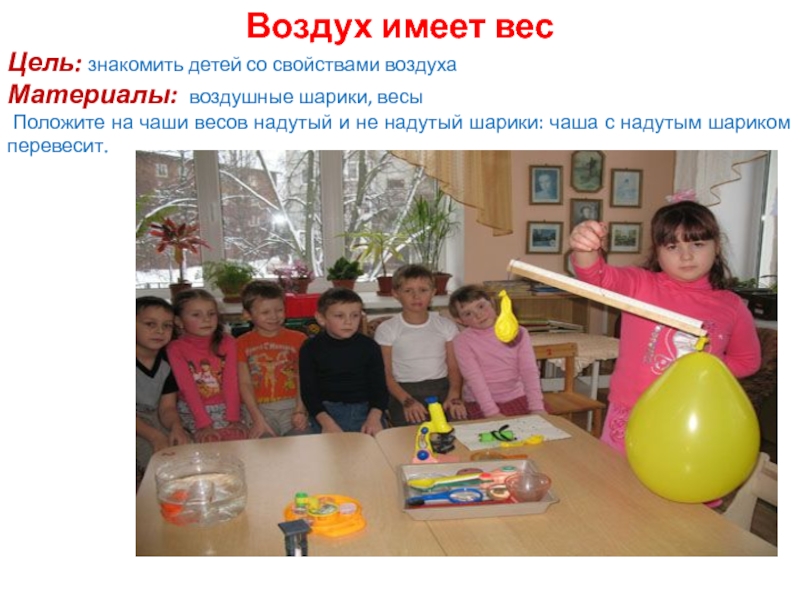 Положите на чаши весов надутый и не надутый шарики: чаша с надутым шариком перевесит.