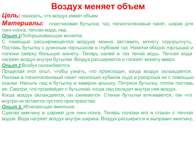 1.Перевернуть стакан вверх дном и медленно опустить его в банку. Обратить внимание детей на то, что стакан нужно держать очень ровно. Что получается? Попадает ли вода в стакан? Почему нет?