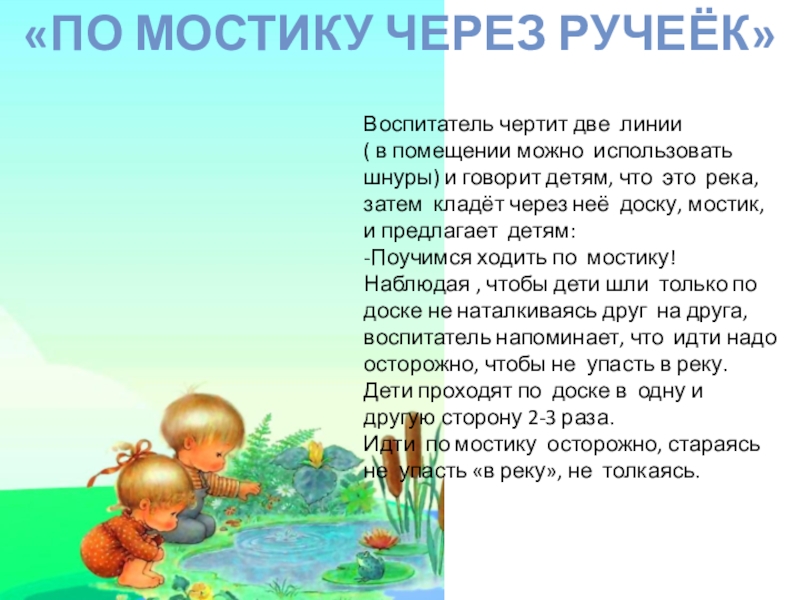 использовать шнуры) и говорит детям, что это река, затем кладёт через неё доску, мостик, и предлагает детям: