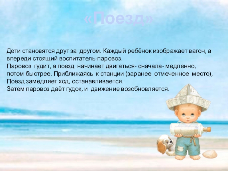 Дети становятся друг за другом. Каждый ребёнок изображает вагон, а
