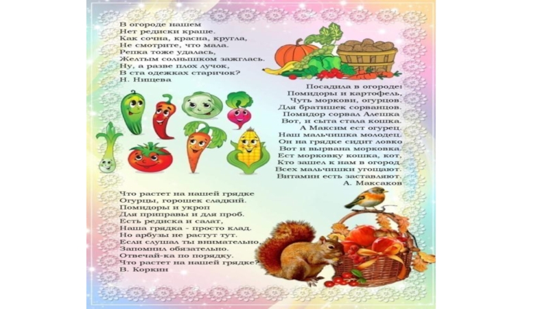 Презентация, доклад на тему Картотека стихов Что растёт на грядке...