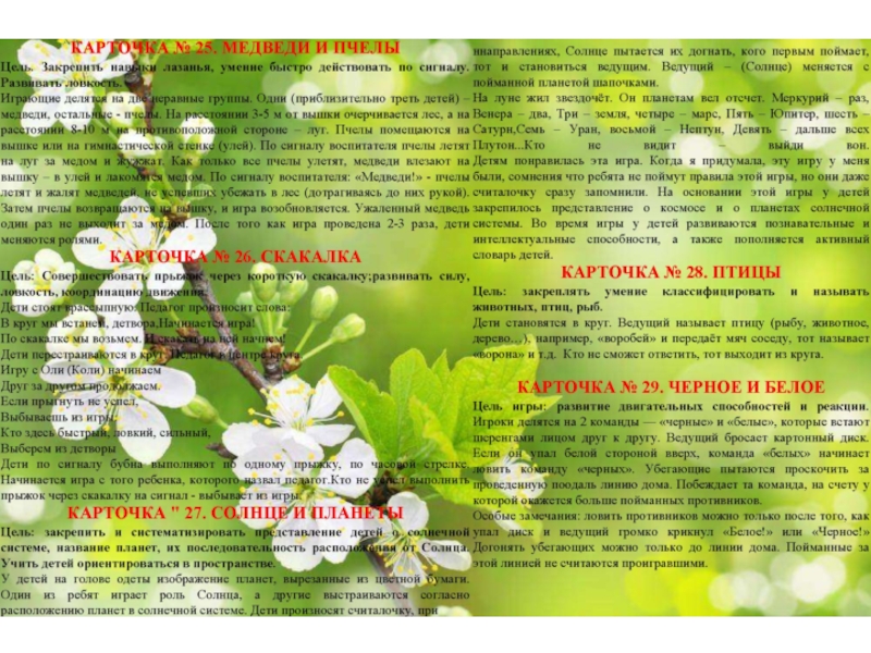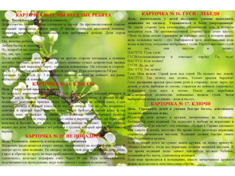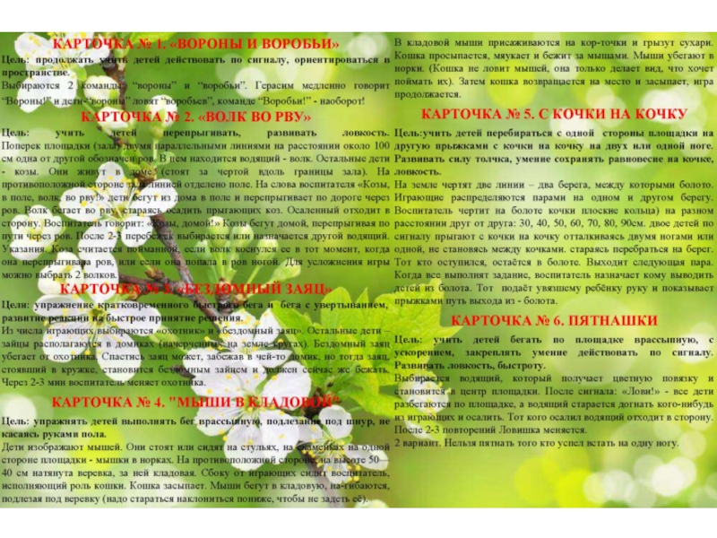Картотека весенних подвижных игр в подготовительной группе Детские презентации