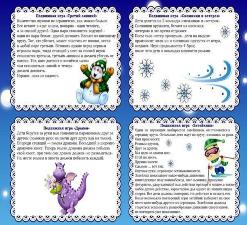 Презентация, доклад на тему Картотека зимних подвижных игр