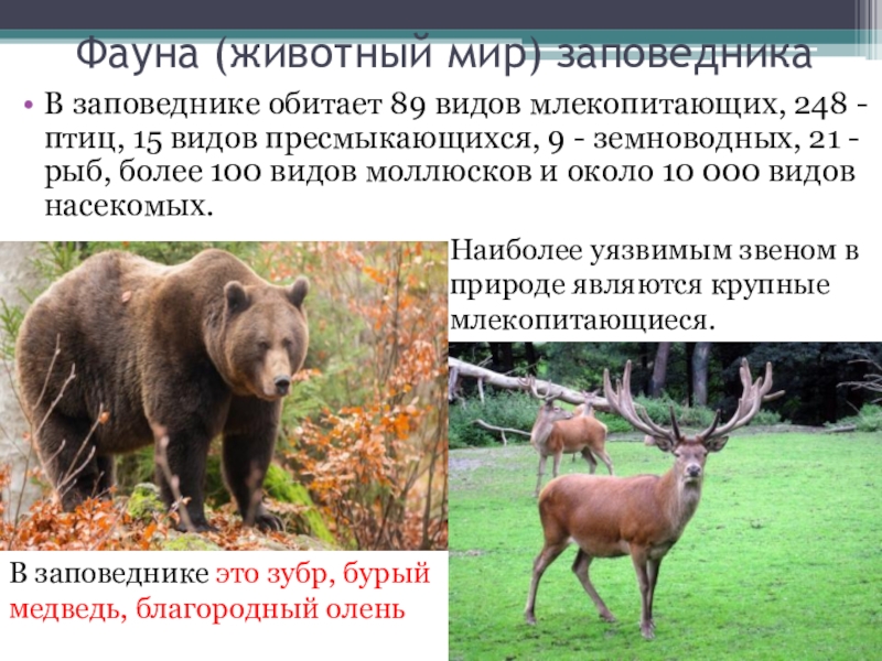 Наиболее уязвимым звеном в природе являются крупные млекопитающиеся.