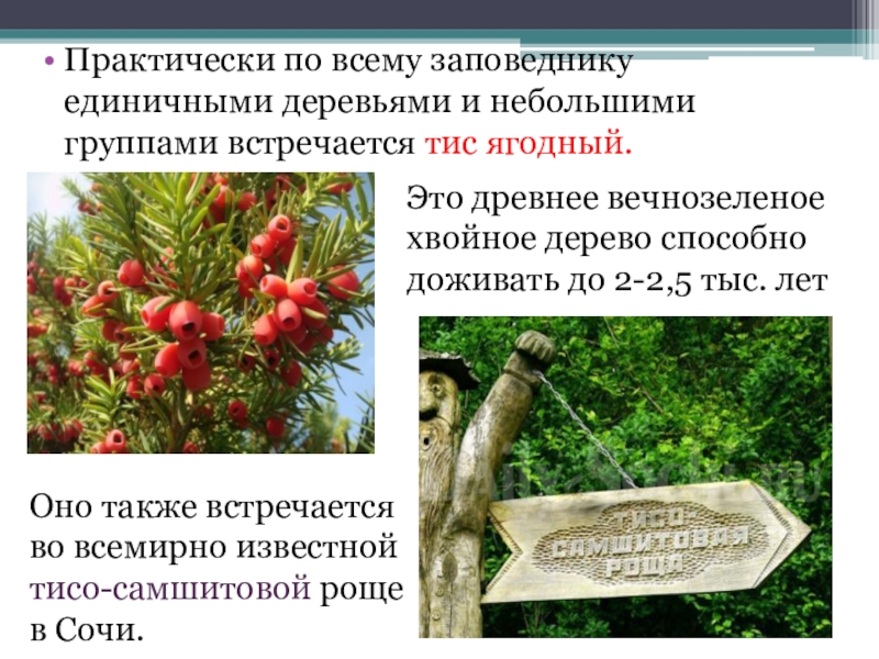 Оно также встречается во всемирно известной тисо-самшитовой роще в Сочи.