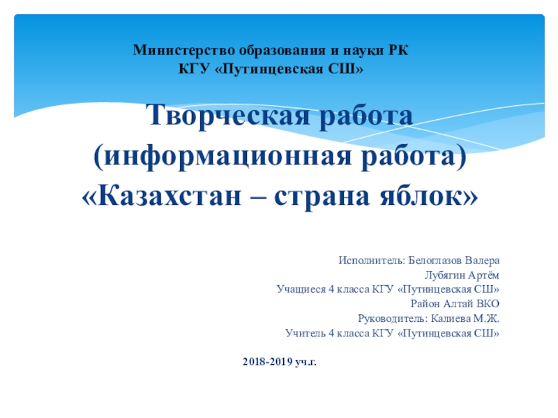 Руководитель: Калиева М.Ж.