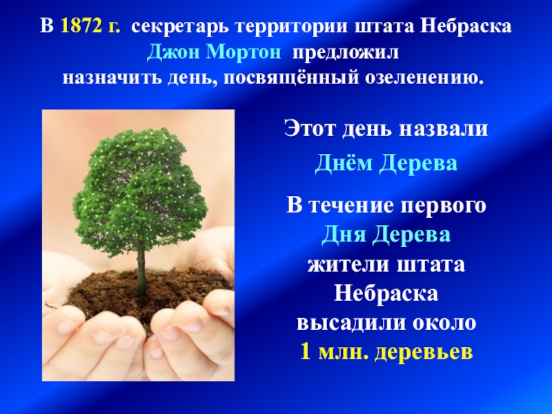В 1872 г. секретарь территории штата Небраска Джон Мортон предложил