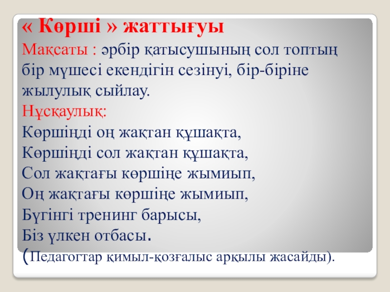 4.“ Көтеріңкі көңіл-күй” жаттығуы.