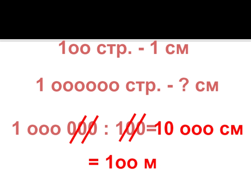 1 oooooo стр. - ? см1oo стр. - 1 см1 ooo 000 : 100=10 ooo см= 1oo