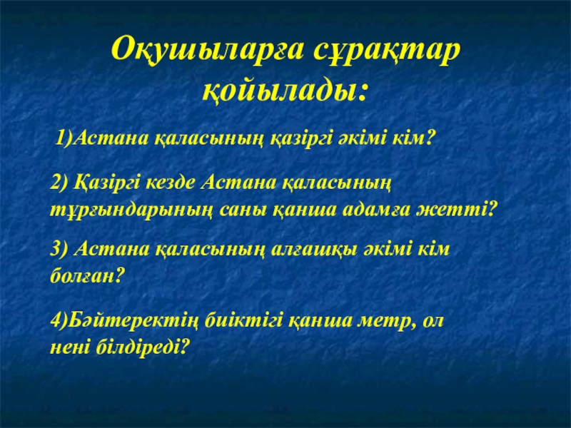 3) Астана қаласының алғашқы әкімі кім болған?