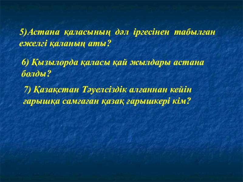 7) Қазақстан Тәуелсіздік алғаннан кейін ғарышқа самғаған қазақ ғарышкері кім?