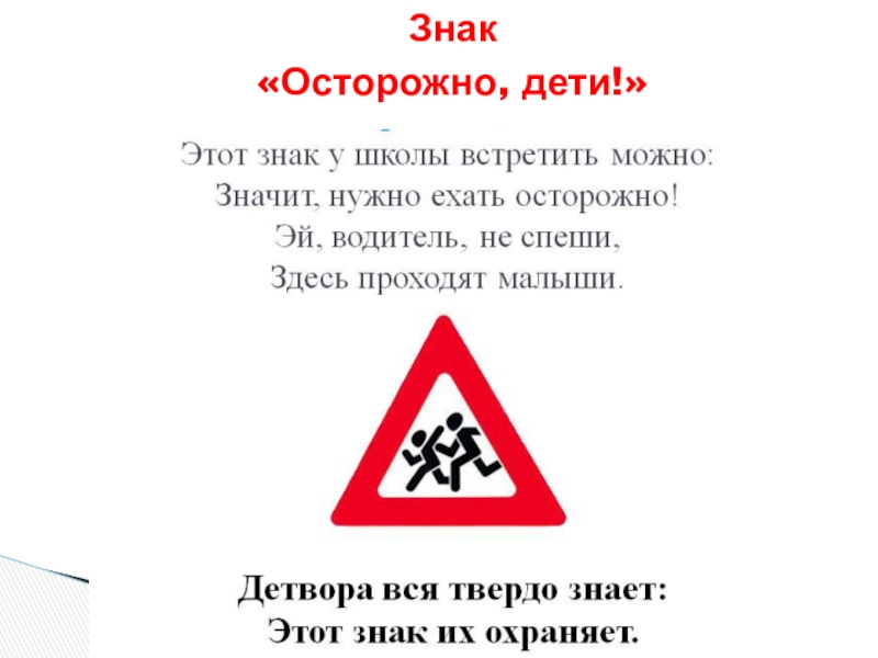 Знак «Движение пешеходов запрещено»Пешеход замедли ход.Стой, дружище - пешеход!Пешеходу ходу нет.Этот знак – на путь запрет!