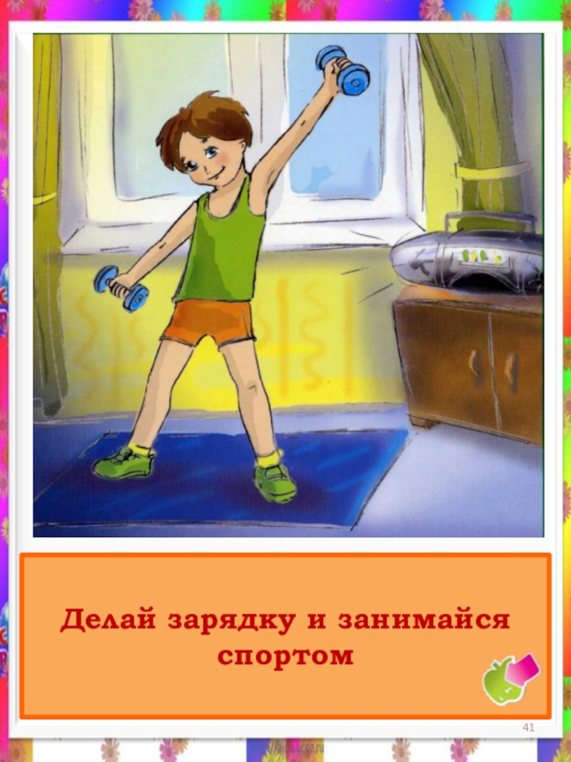 Слайд 44Ежедневную зарядку нужно делать обязательно, и несколько раз в неделю нужно