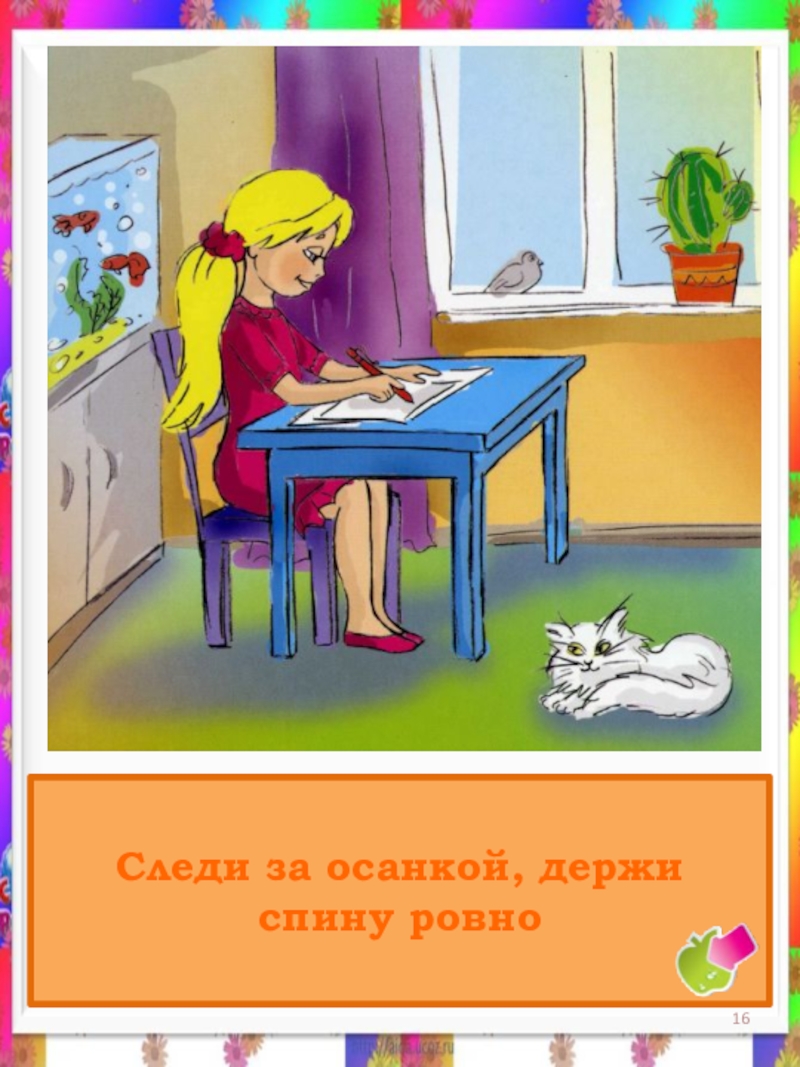 Слайд 17Осанка – это привычное положение тела человека. Правильная осанка формируется с