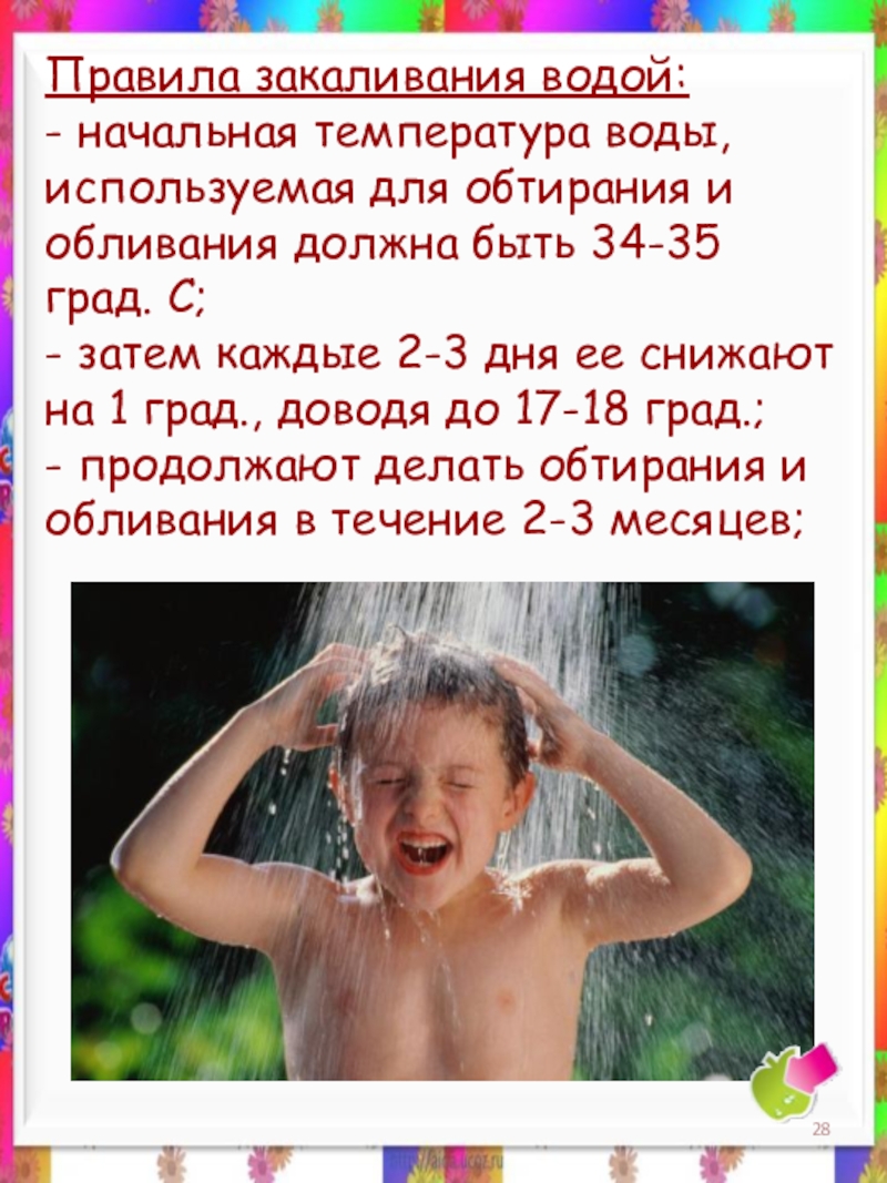 - продолжают делать обтирания и обливания в течение 2-3 месяцев;