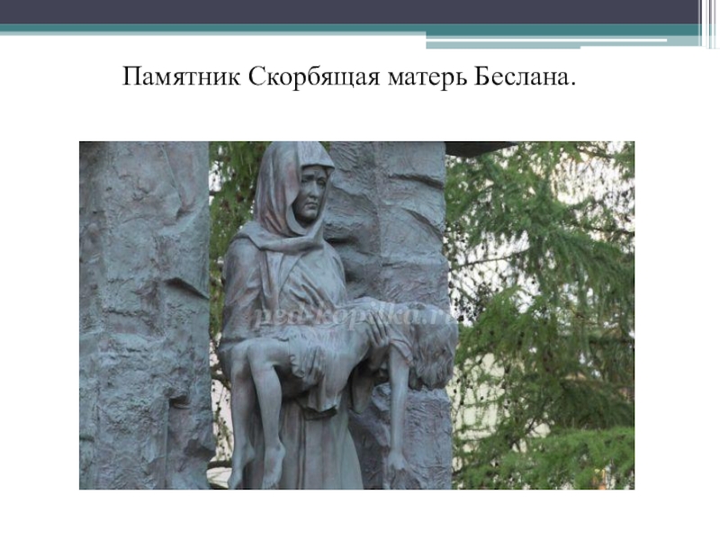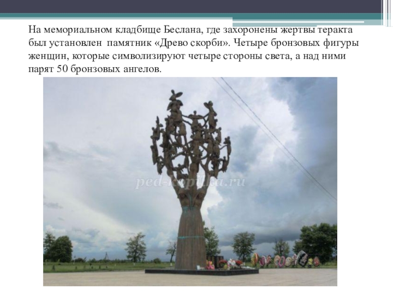 Слайд 47На мемориальном кладбище Беслана, где захоронены жертвы теракта был установлен памятник