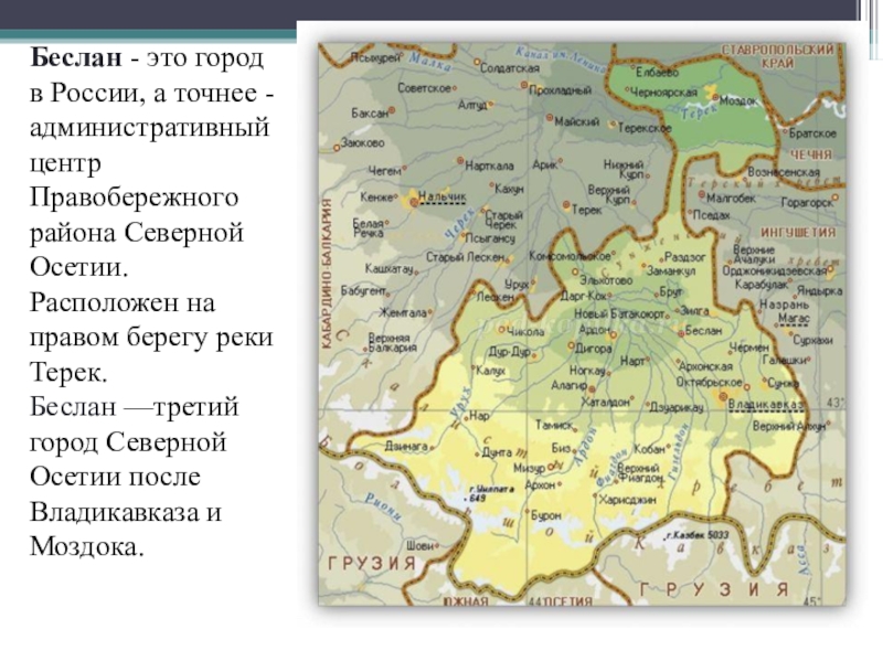 Слайд 2Беслан - это город в России, а точнее - административный центр Правобережного