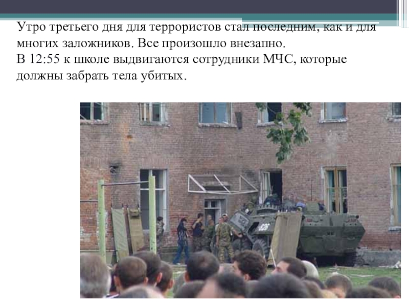 Слайд 17Утро третьего дня для террористов стал последним, как и для многих