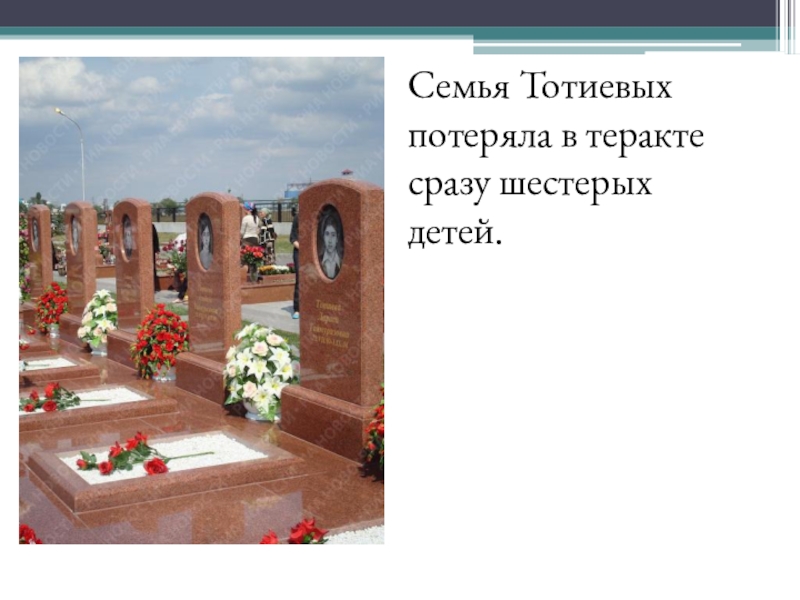 Слайд 46Семья Тотиевых потеряла в теракте сразу шестерых детей.