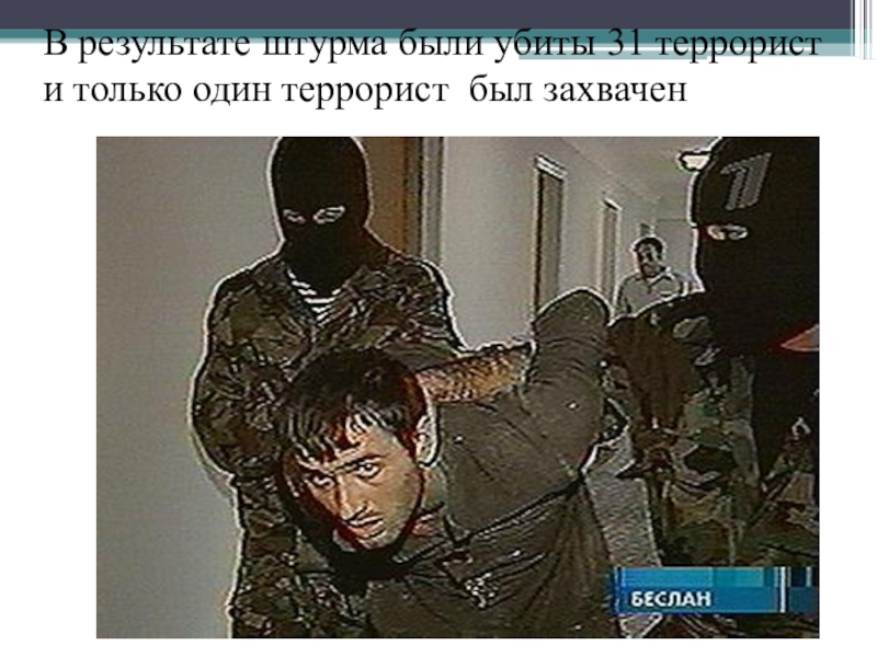 Слайд 32В результате штурма были убиты 31 террорист и только один террорист