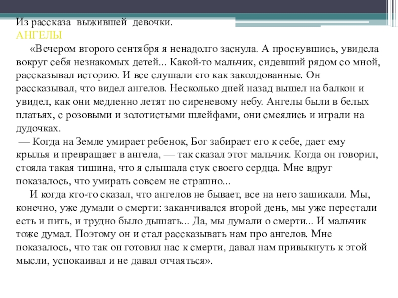 Слайд 15Из рассказа выжившей девочки.