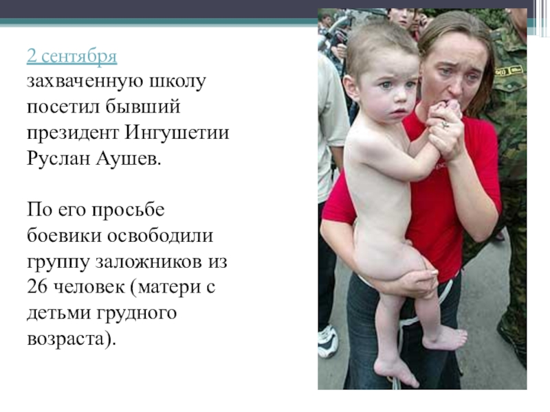 его просьбе боевики освободили группу заложников из 26 человек (матери с детьми грудного возраста).