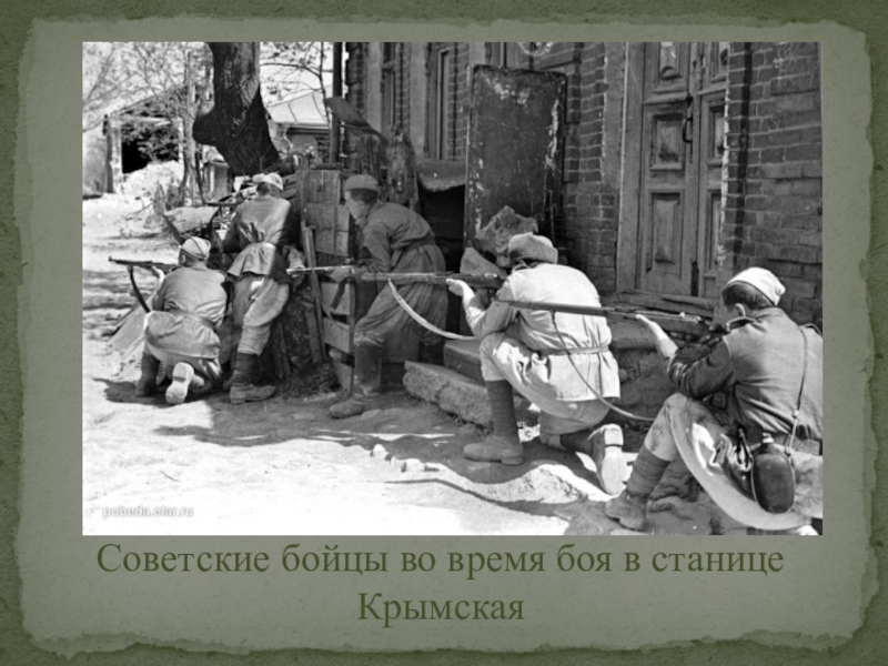 Слайд 12Советские бойцы во время боя в станице Крымская