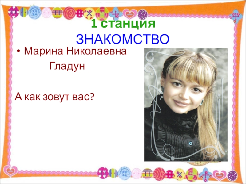 1 станция ЗНАКОМСТВОМарина Николаевна       ГладунА как зовут вас?