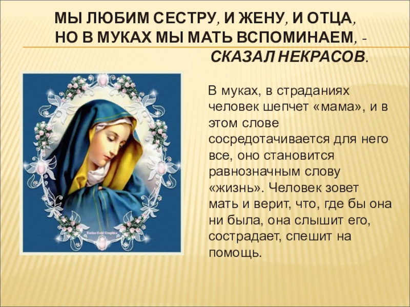 Слайд 20Что может быть на свете более священным, чем имя «мать» для