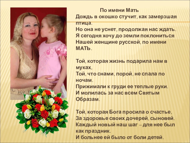 Нашей женщине русской, по имени МАТЬ.