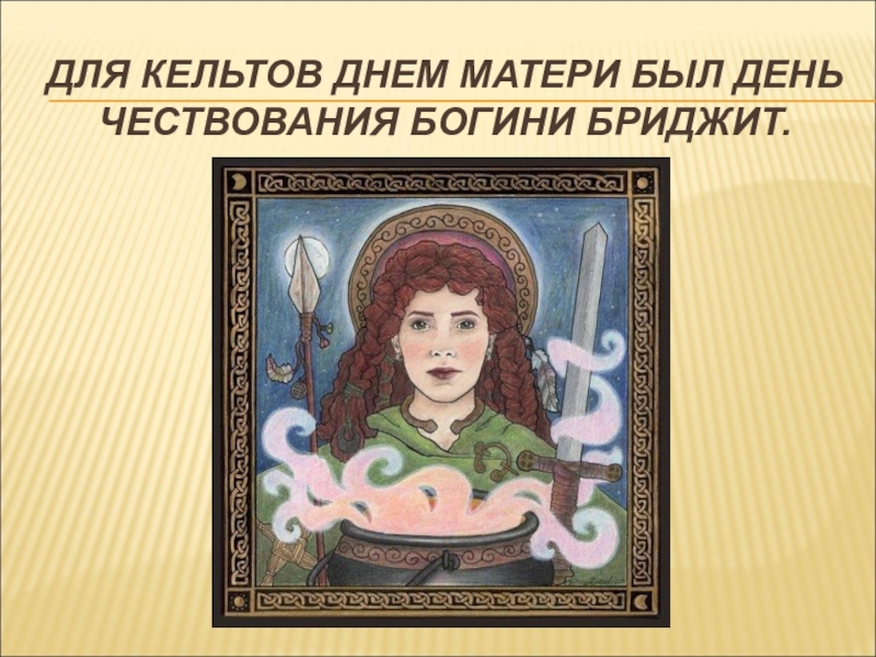 Слайд 5ДЛЯ КЕЛЬТОВ ДНЕМ МАТЕРИ БЫЛ ДЕНЬ ЧЕСТВОВАНИЯ БОГИНИ БРИДЖИТ.