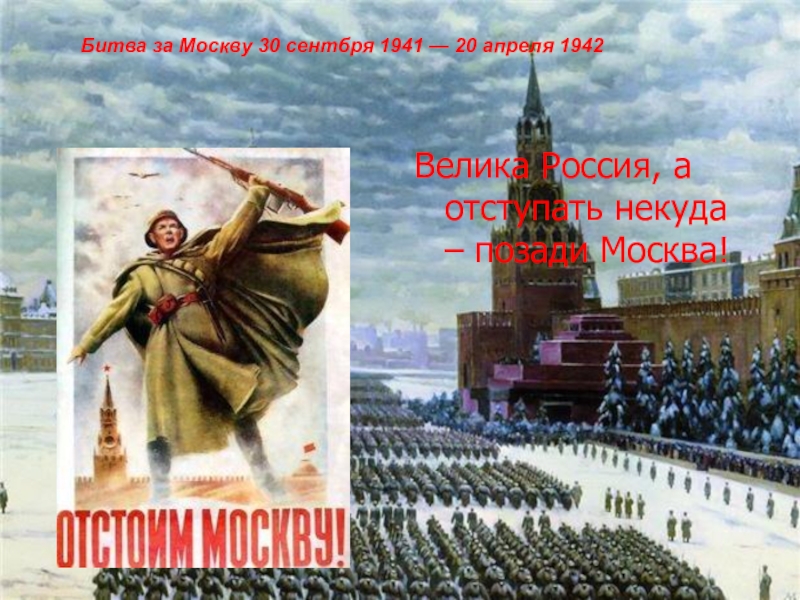 Велика Россия, а отступать некуда – позади Москва!Битва за Москву 30 сентбря 1941 — 20 апреля 1942