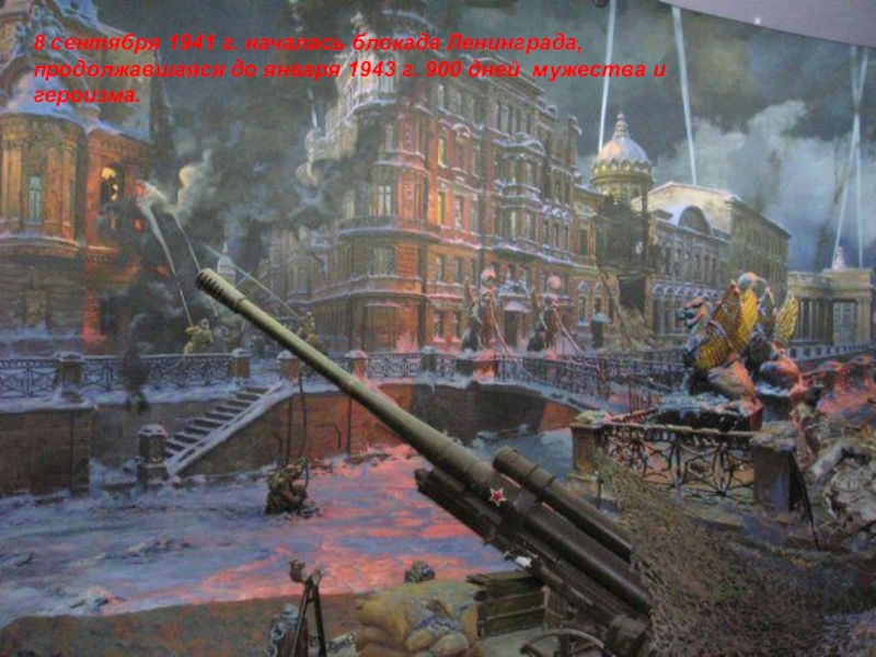 8 сентября 1941 г. началась блокада Ленинграда, продолжавшаяся до января 1943 г. 900 дней мужества и героизма.