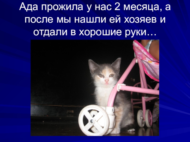 Слайд 5Ада прожила у нас 2 месяца, а после мы нашли ей