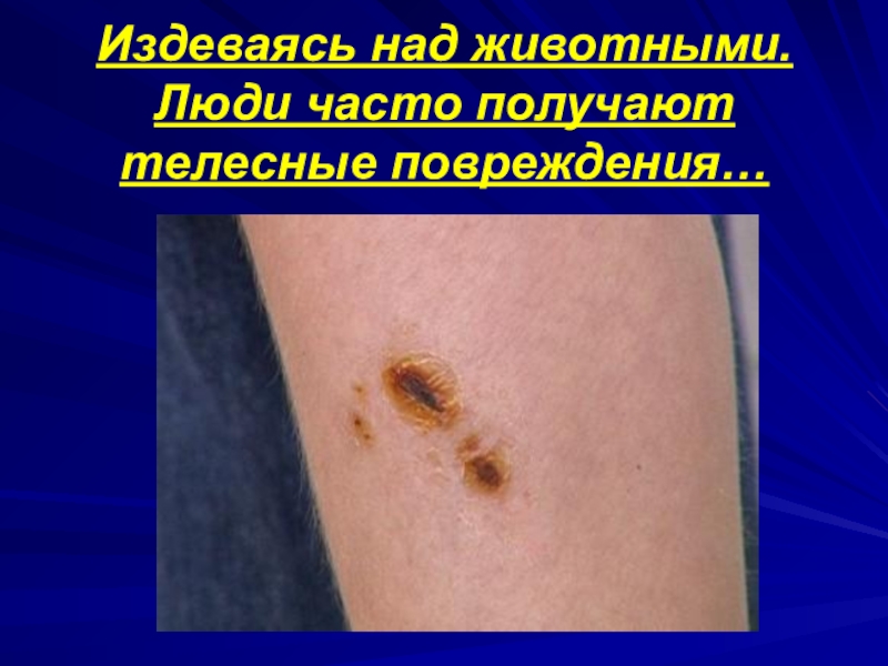 Слайд 10Издеваясь над животными. Люди часто получают телесные повреждения…