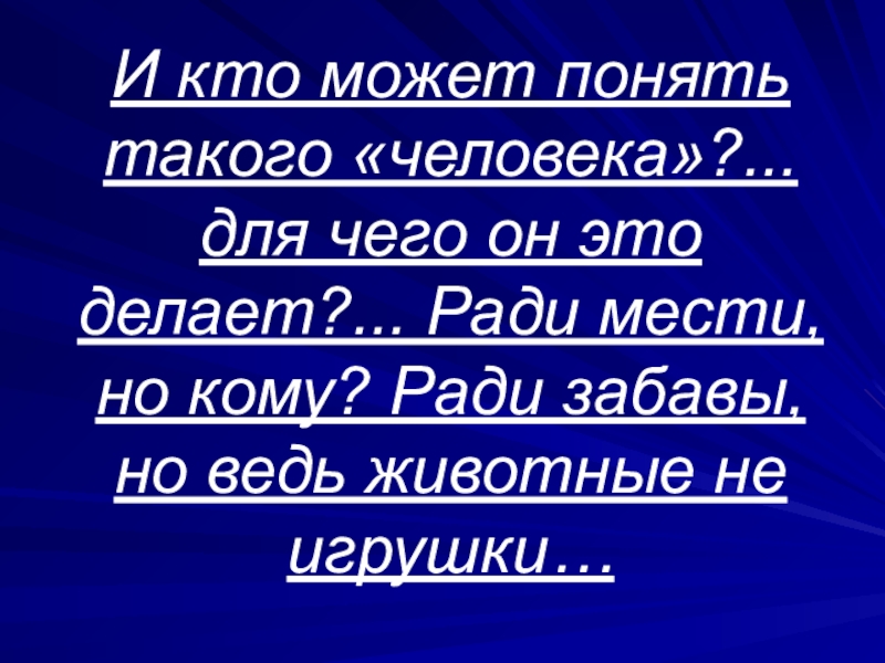 Слайд 18И кто может понять такого «человека»?...для чего он это делает?... Ради
