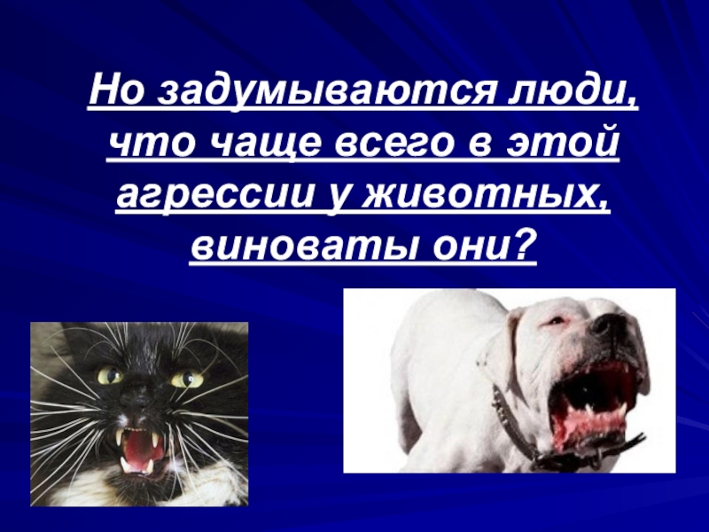 Слайд 9Но задумываются люди, что чаще всего в этой агрессии у животных,