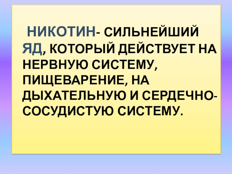 НИКОТИН- СИЛЬНЕЙШИЙ ЯД, КОТОРЫЙ ДЕЙСТВУЕТ НА НЕРВНУЮ СИСТЕМУ, ПИЩЕВАРЕНИЕ,