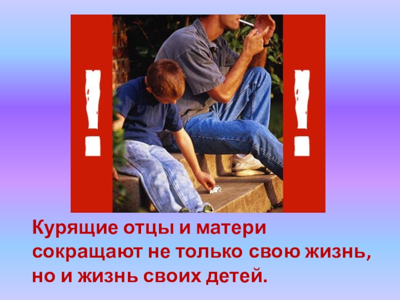Слайд 14Курящие отцы и матери сокращают не только свою жизнь, но и