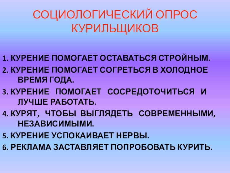 Слайд 5СОЦИОЛОГИЧЕСКИЙ ОПРОС КУРИЛЬЩИКОВ