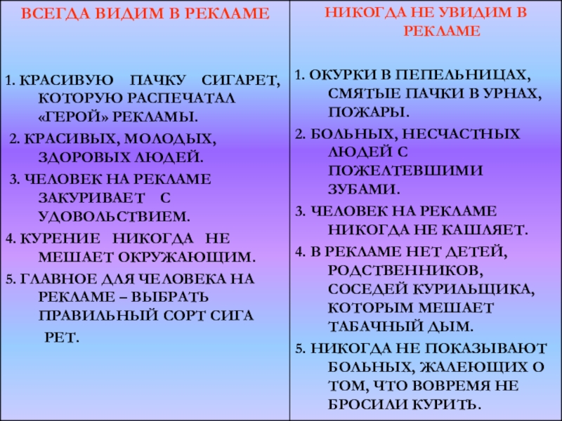6. РЕКЛАМА ЗАСТАВЛЯЕТ ПОПРОБОВАТЬ КУРИТЬ.