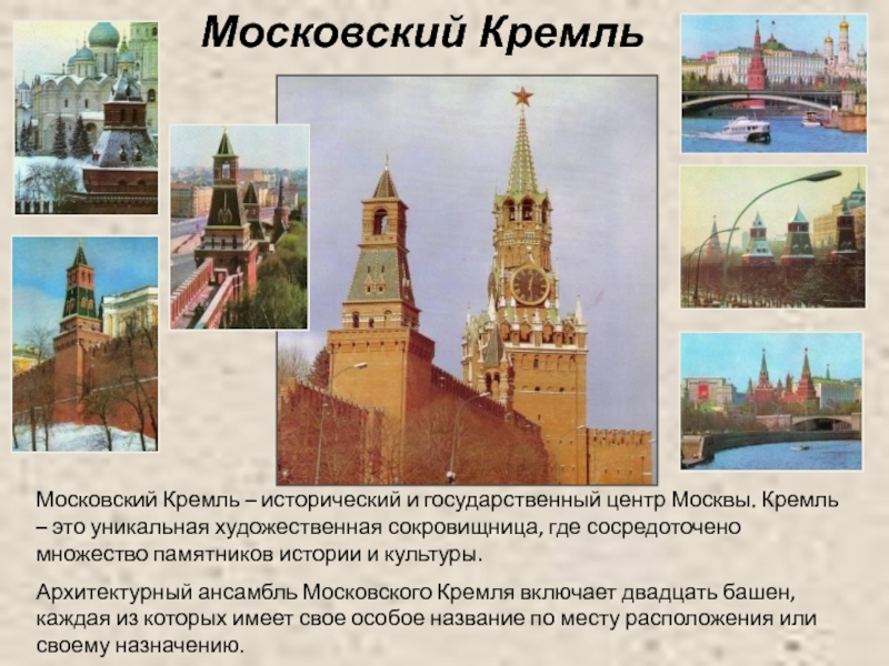 Московский Кремль – исторический и государственный центр Москвы. Кремль –