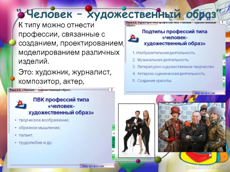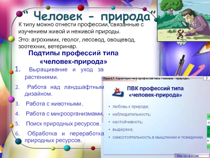 Подтипы профессий типа