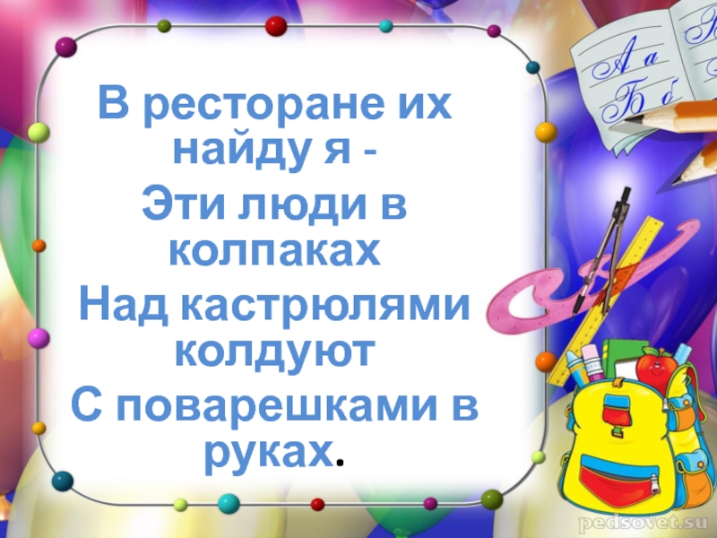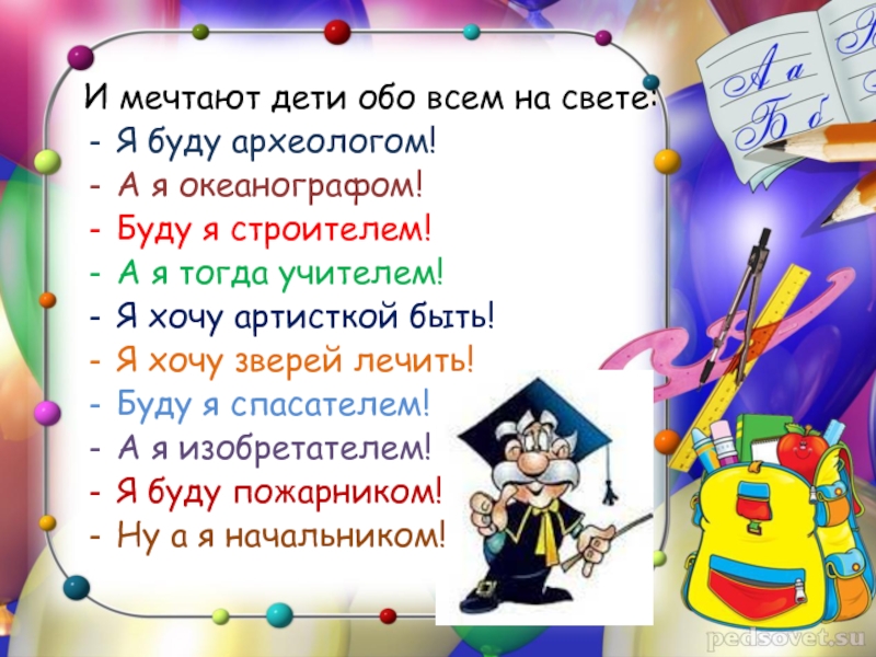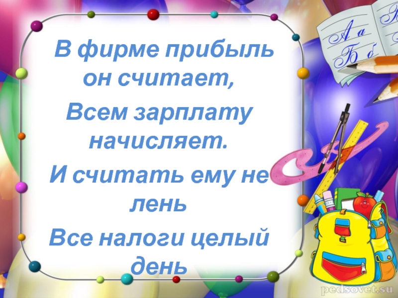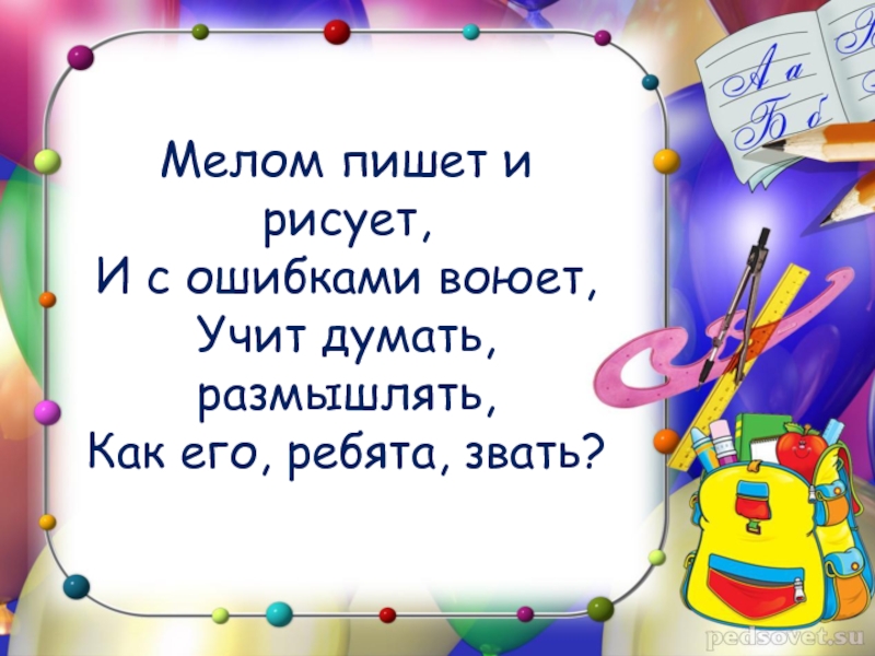Это сайт презентаций, где можно хранить и обмениваться своими презентациями, докладами, проектами, шаблонами в формате PowerPoint с другими пользователями. Мы помогаем школьникам, студентам, учителям, преподавателям хранить и обмениваться учебными материалами.