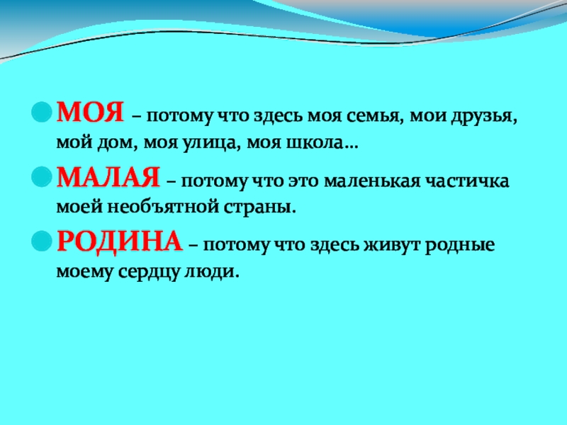 Слайд 6МОЯ – потому что здесь моя семья, мои друзья, мой дом,