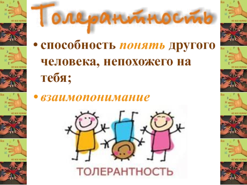 Слайд 4способность понять другого человека, непохожего на тебя;