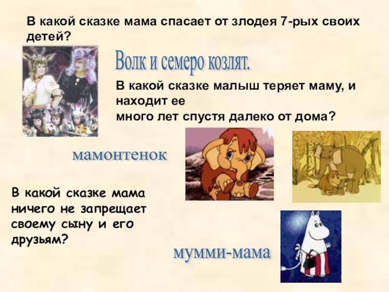 В какой сказке малыш теряет маму, и находит ее